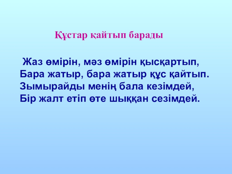 Слайд 18 Жаз өмірін, мәз өмірін қысқартып,