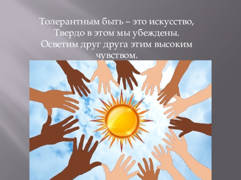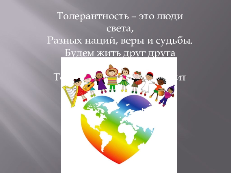 Слайд 7Толерантность – это люди света,