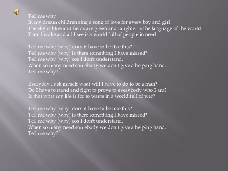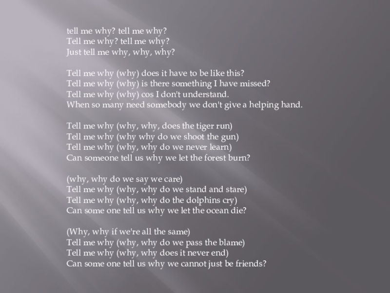 Слайд 10tell me why? tell me why?