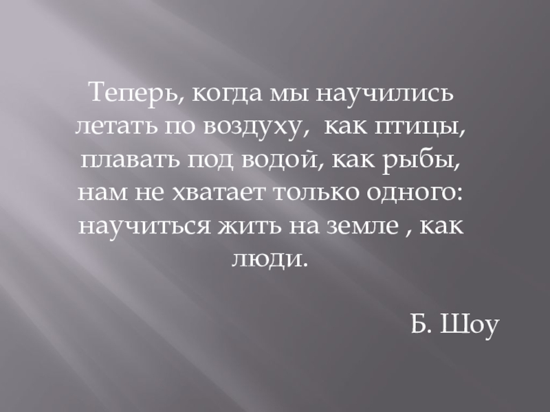 научиться жить на земле , как люди.