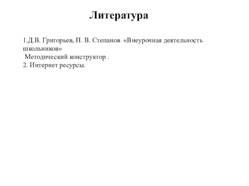 1.Д.В. Григорьев, П. В. Степанов «Внеурочная деятельность школьников»