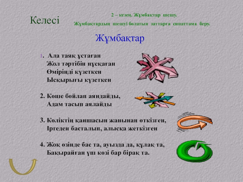 Жұмбақтардың шешуі болатын заттарға сипаттама беру.