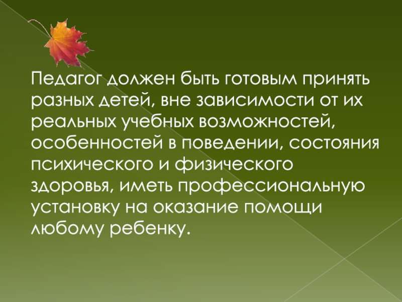 Слайд 5Педагог должен быть готовым принять разных детей, вне зависимости от их