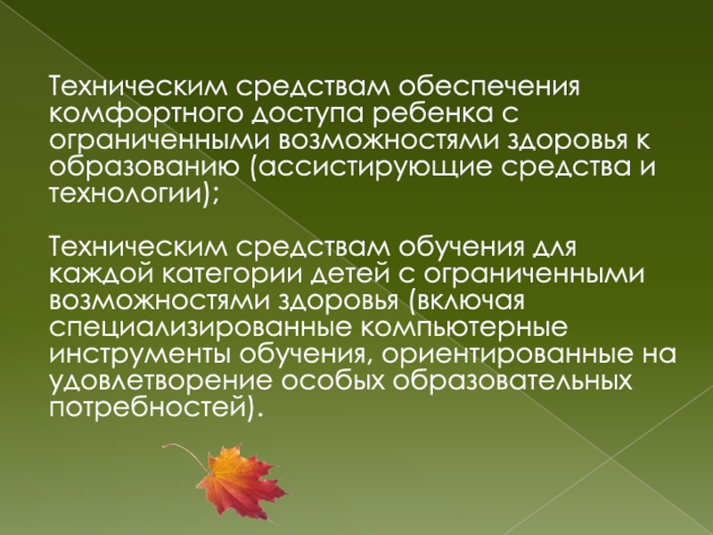 Слайд 31Техническим средствам обеспечения комфортного доступа ребенка с ограниченными возможностями здоровья к