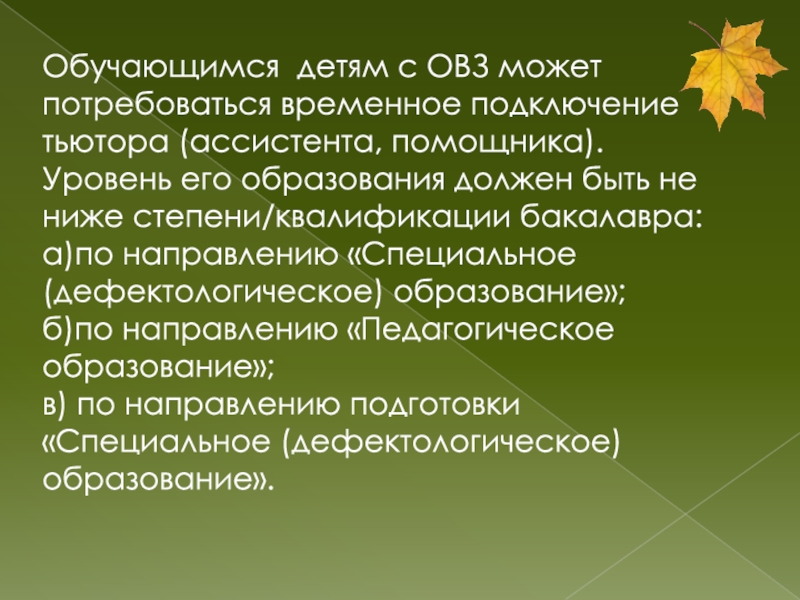Слайд 12Обучающимся детям с ОВЗ может потребоваться временное подключение тьютора (ассистента, помощника).