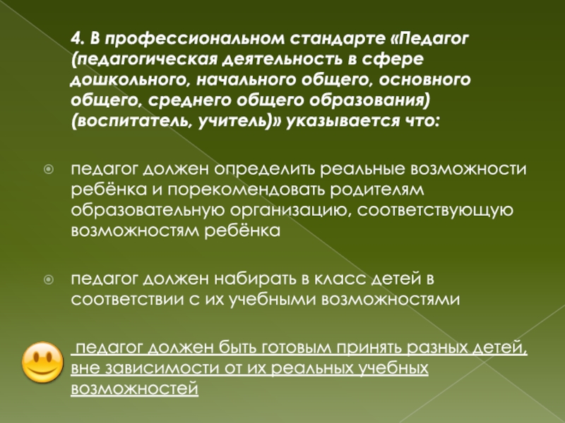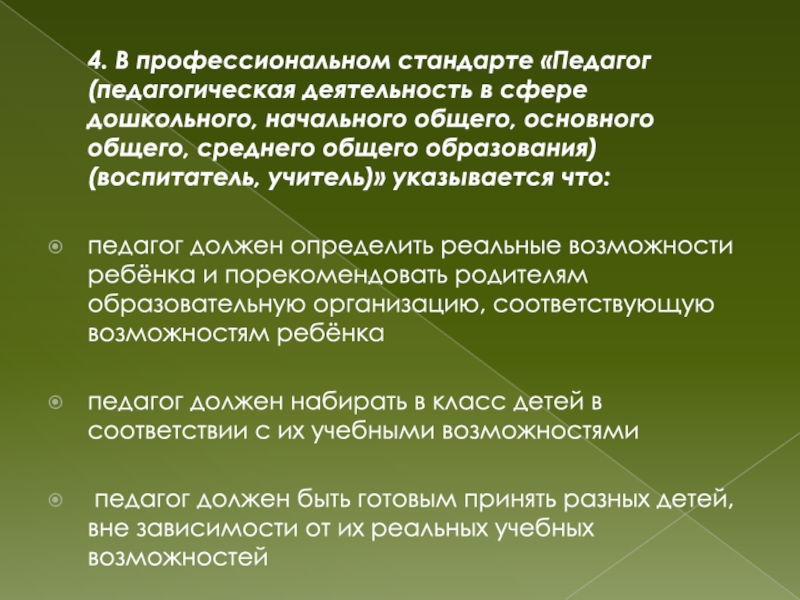 Слайд 42 4. В профессиональном стандарте «Педагог (педагогическая деятельность в