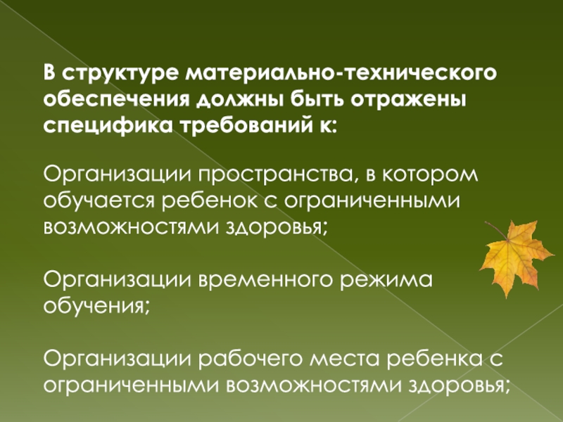 Слайд 30В структуре материально-технического обеспечения должны быть отражены специфика требований к: