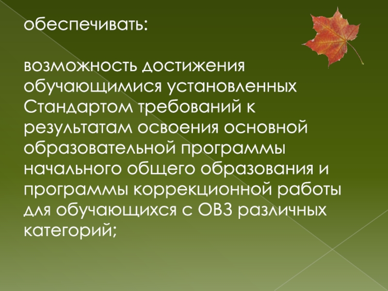 возможность достижения обучающимися установленных Стандартом требований к результатам освоения основной образовательной