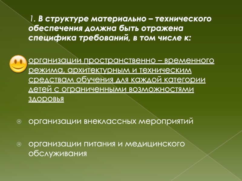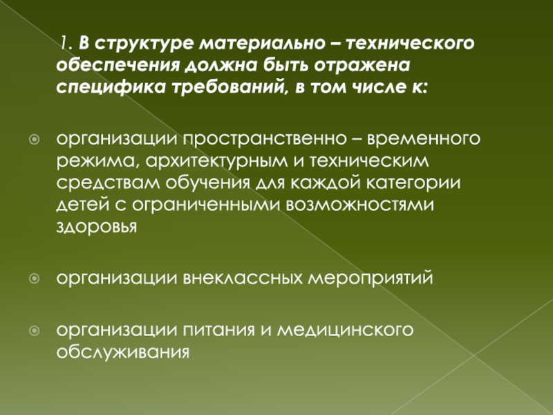 Слайд 33 1. В структуре материально – технического обеспечения должна