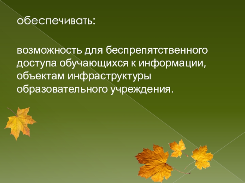 Слайд 25возможность для беспрепятственного доступа обучающихся к информации, объектам инфраструктуры образовательного учреждения.