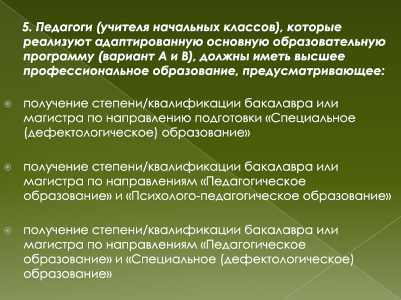 получение степени/квалификации бакалавра или магистра по направлениям «Педагогическое образование» и «Специальное (дефектологическое) образование»