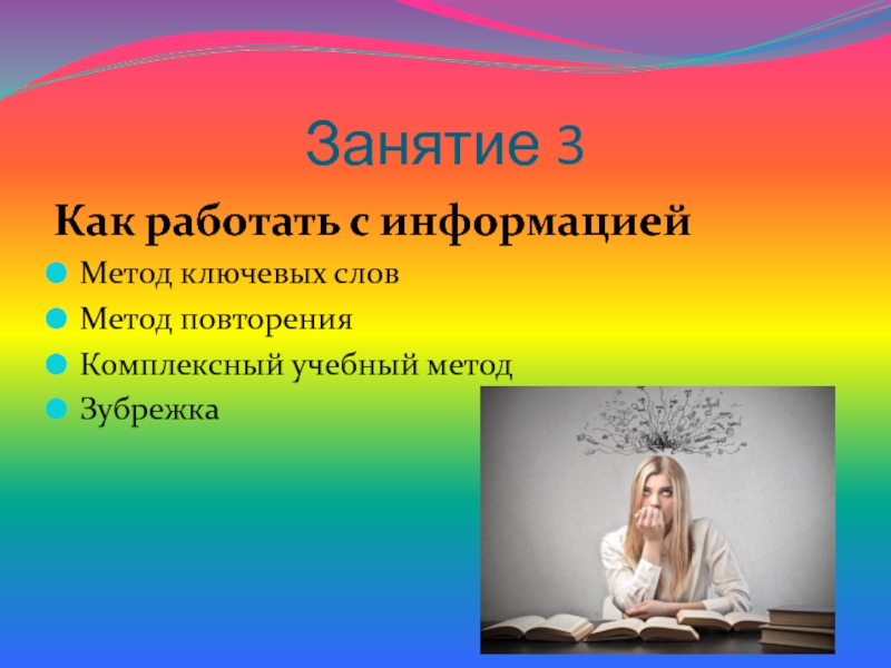 Занятие 3Как работать с информациейМетод ключевых словМетод повторенияКомплексный учебный методЗубрежка