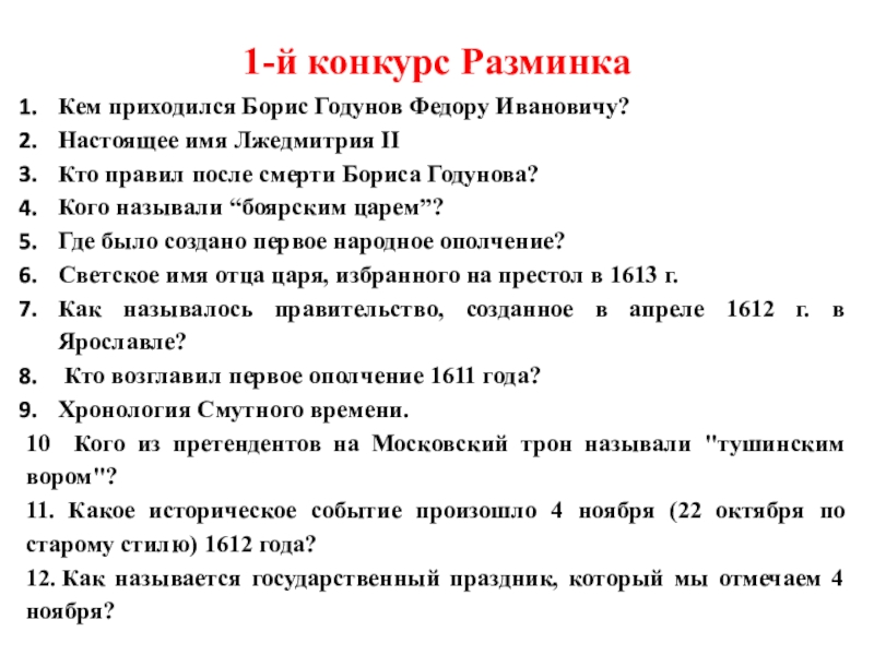 Слайд 1Турнир знатоков истории России, посвященный Дню народного единства