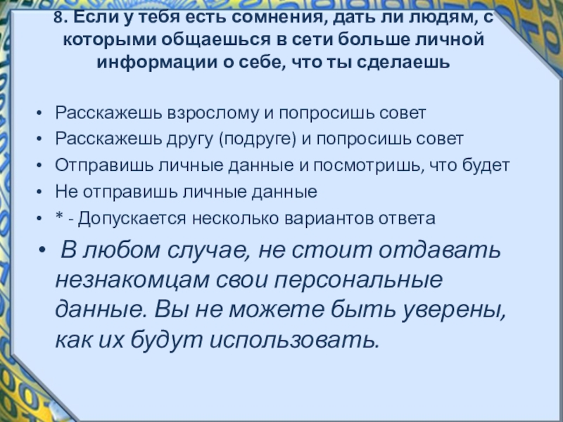 В любом случае, не стоит отдавать незнакомцам свои персональные данные. Вы не можете быть уверены, как их будут использовать.
