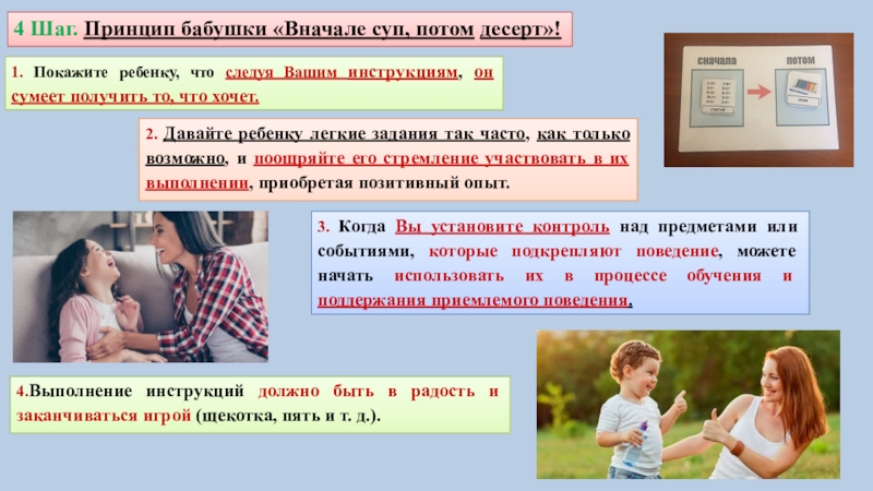 4.Выполнение инструкций должно быть в радость и заканчиваться игрой (щекотка, пять и т. д.).