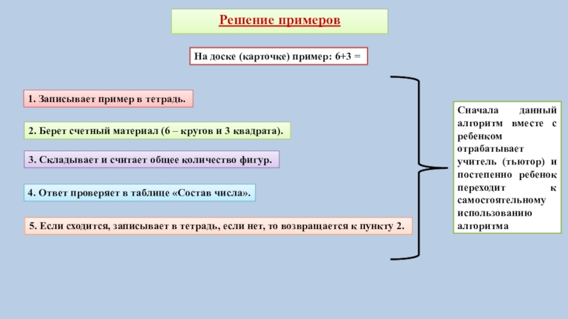 Сначала данный алгоритм вместе с ребенком отрабатывает учитель (тьютор) и постепенно ребенок переходит к самостоятельному использованию алгоритма