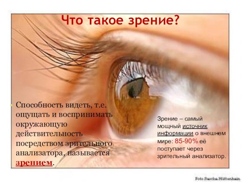 Зрение – самый мощный источник информации о внешнем мире: 85-90% её поступает через зрительный анализатор.