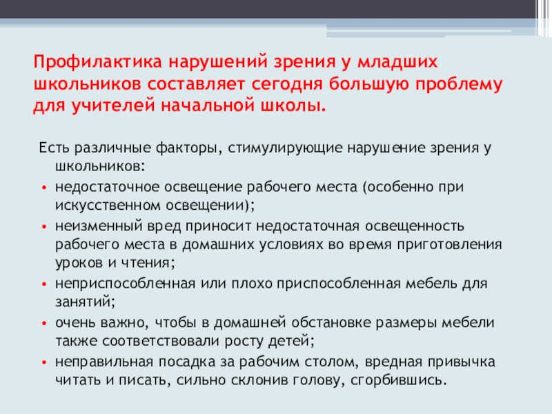 Есть различные факторы, стимулирующие нарушение зрения у школьников: