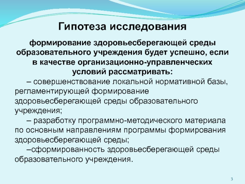 Предмет исследования: управление формированием здоровьесберегающей среды в санаторно-лесной школе.