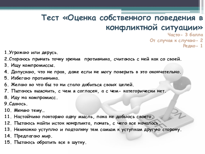 2.Стараюсь принять точку зрения противника, считаюсь с ней как со своей.