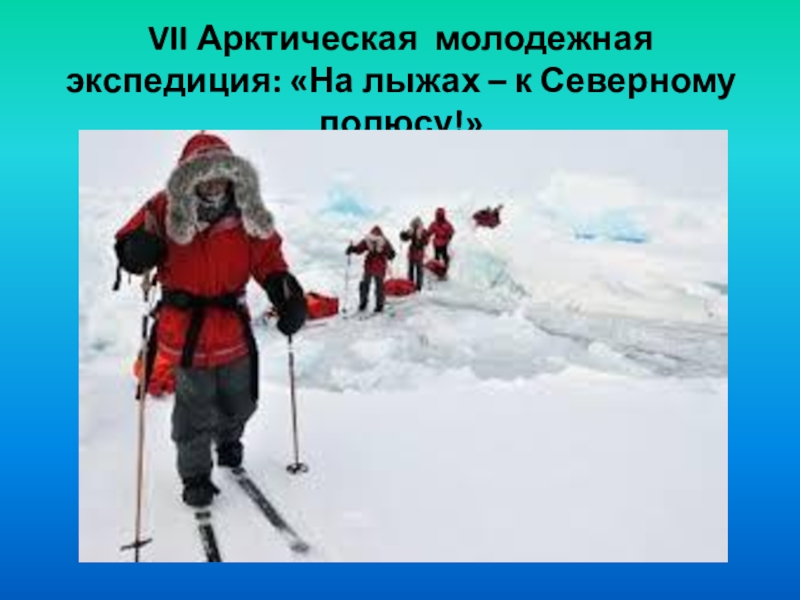 Слайд 15VII Арктическая молодежная экспедиция: «На лыжах – к Северному полюсу!»