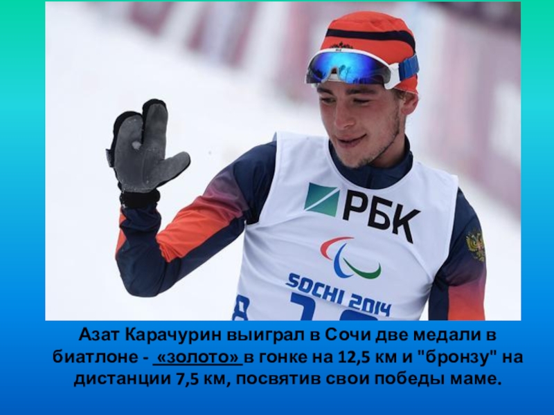 Слайд 8Азат Карачурин выиграл в Сочи две медали в биатлоне -  «золото»