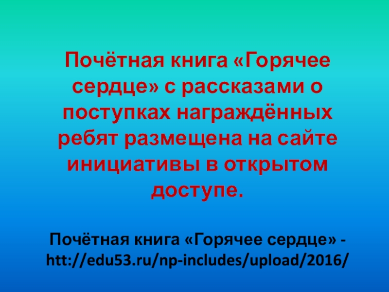 Почётная книга «Горячее сердце» - htt://edu53.ru/np-includes/upload/2016/