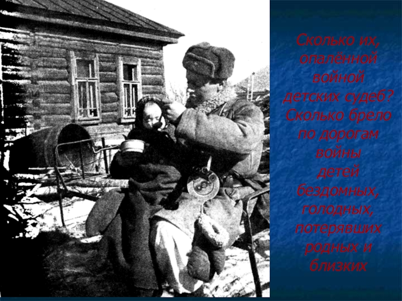 Сколько их, опалённойвойнойдетских судеб? Сколько брело по дорогамвойныдетейбездомных,голодных,потерявшихродных иблизких