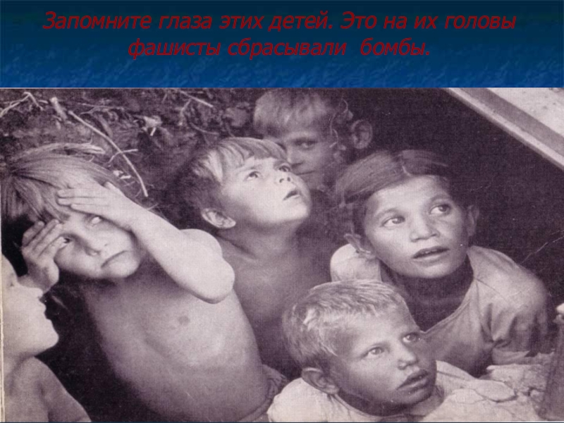 Слайд 6Запомните глаза этих детей. Это на их головы фашисты сбрасывали бомбы.