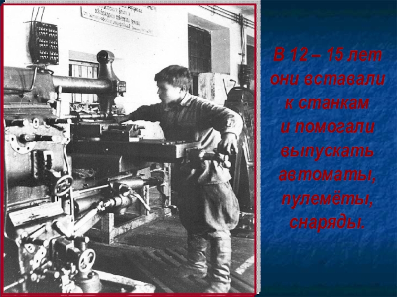 В 12 – 15 летони вставалик станками помогаливыпускатьавтоматы,пулемёты,снаряды.