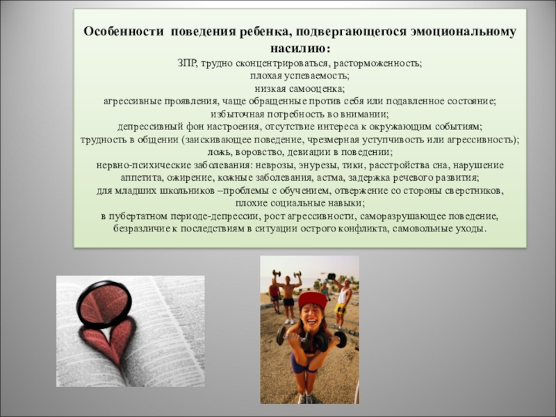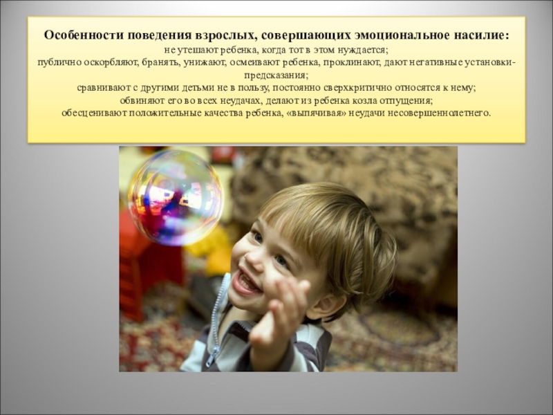 Слайд 5Особенности поведения ребенка, подвергающегося эмоциональному насилию: