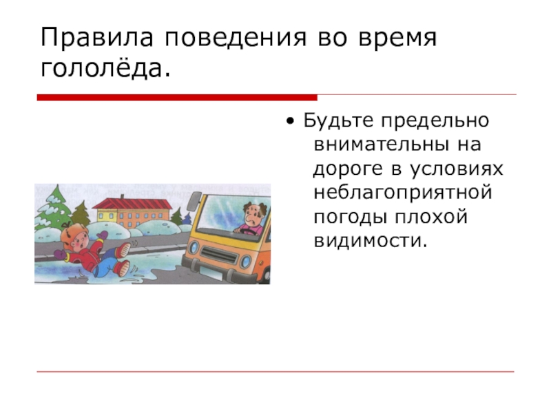• Будьте предельно внимательны на дороге в условиях неблагоприятной погоды плохой видимости.