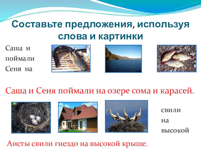 Саша и Сеня поймали на озере сома и карасей.