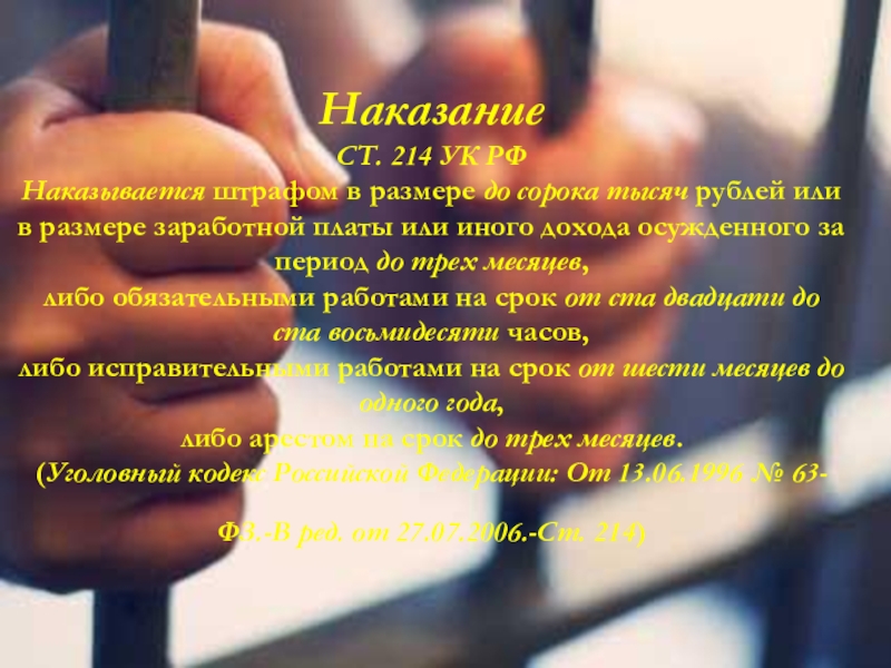(Уголовный кодекс Российской Федерации: От 13.06.1996 № 63-ФЗ.-В ред. от 27.07.2006.-Ст. 214)