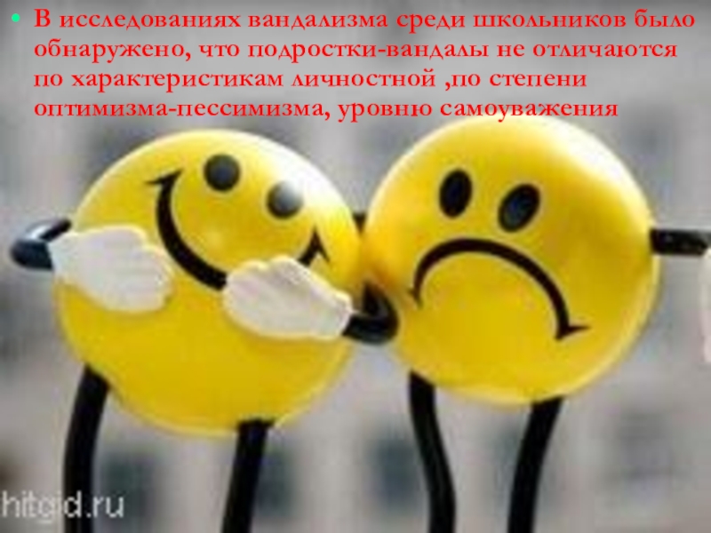 Слайд 49В исследованиях вандализма среди школьников было обнаружено, что подростки-вандалы не отличаются