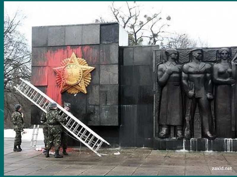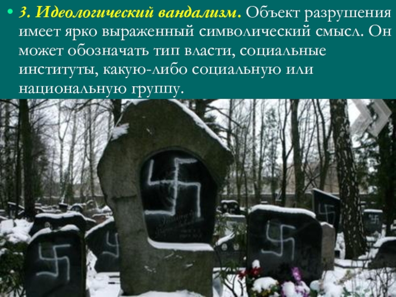 Слайд 393. Идеологический вандализм. Объект разрушения имеет ярко выраженный символический смысл. Он