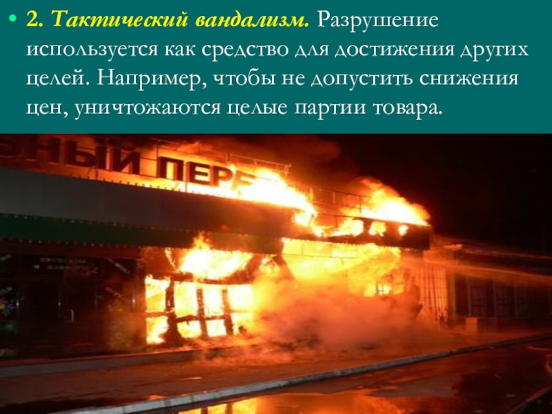 Слайд 382. Тактический вандализм. Разрушение используется как средство для достижения других целей.