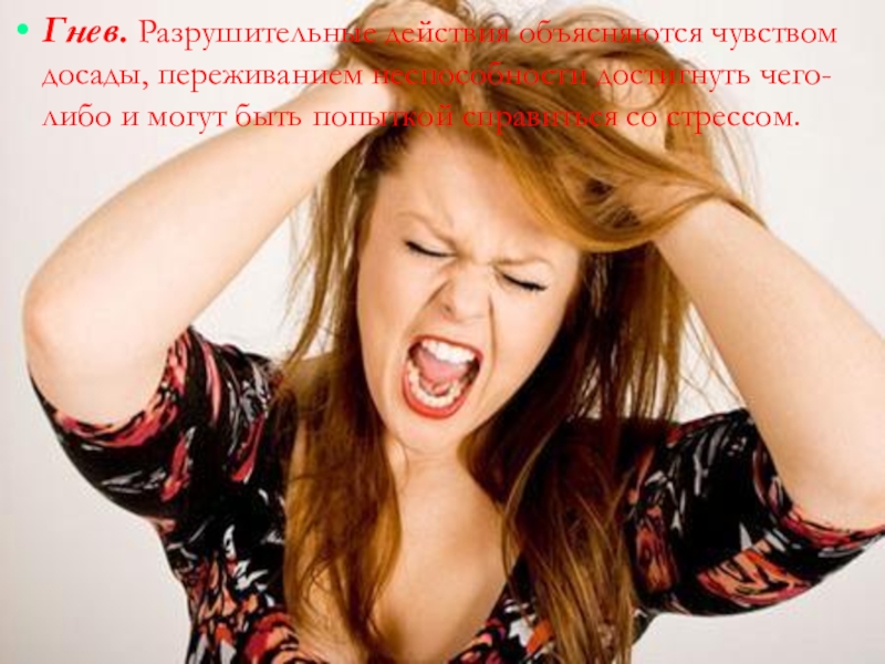 Слайд 44Гнев. Разрушительные действия объясняются чувством досады, переживанием неспособности достигнуть чего-либо и
