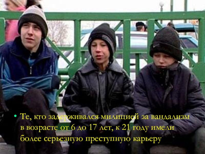 Слайд 51Те, кто задерживался милицией за вандализм в возрасте от 6 до