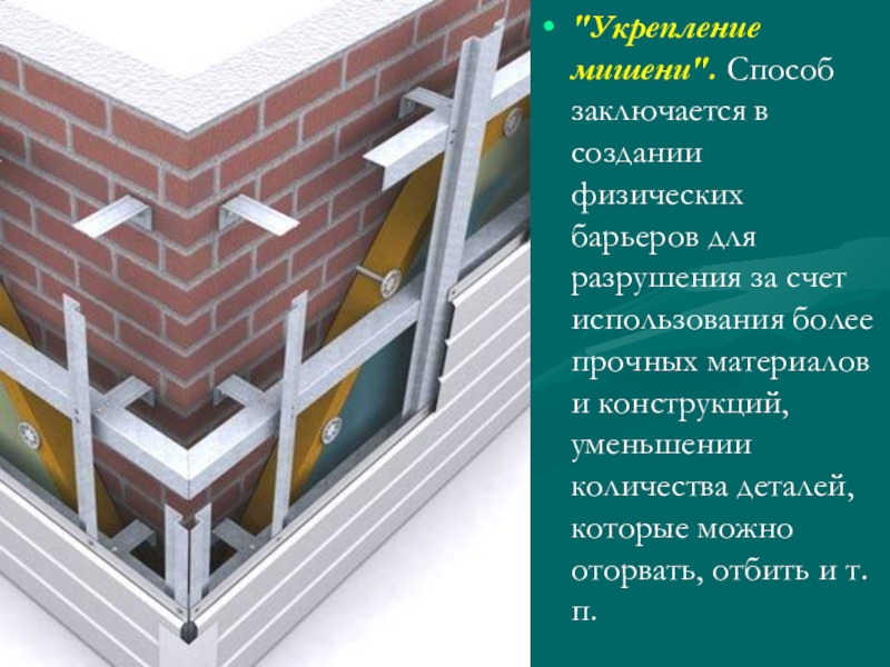 Слайд 57"Укрепление мишени". Способ заключается в создании физических барьеров для разрушения за