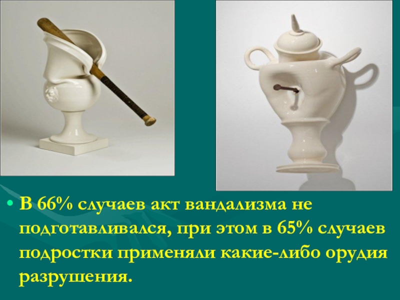 Слайд 54В 66% случаев акт вандализма не подготавливался, при этом в 65%