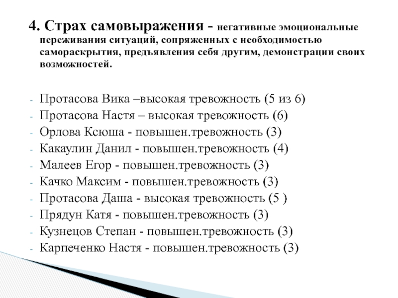 Слайд 54. Страх самовыражения - негативные эмоциональные переживания ситуаций, сопряженных с необходимостью