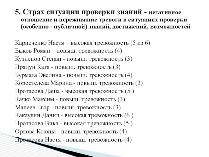 Карпеченко Настя – высокая тревожность (5 из 6)