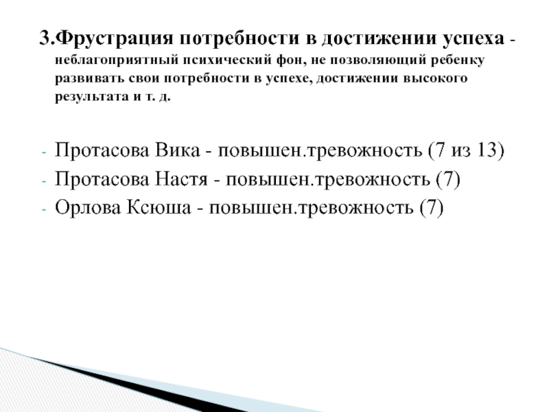 Слайд 43.Фрустрация потребности в достижении успеха - неблагоприятный психический фон, не позволяющий