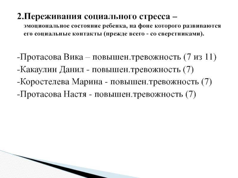 Слайд 32.Переживания социального стресса – эмоциональное состояние ребенка, на фоне которого развиваются