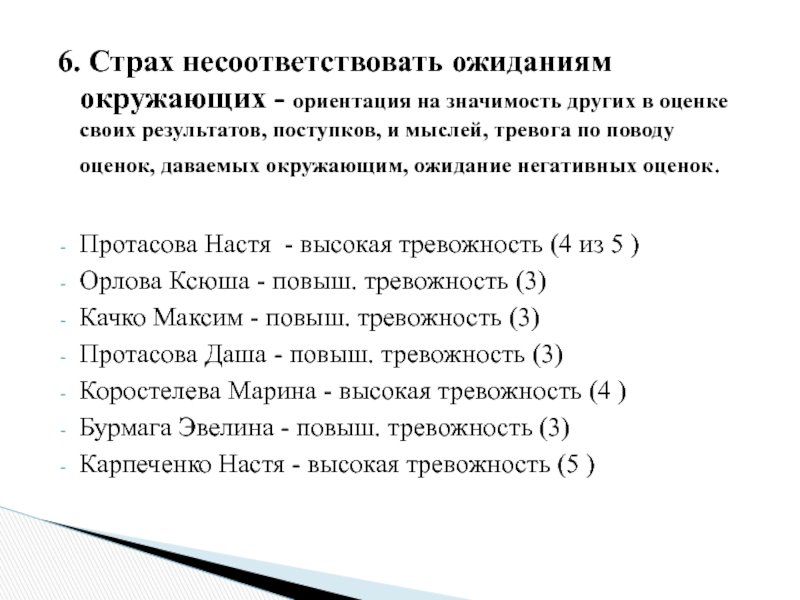 Слайд 76. Страх несоответствовать ожиданиям окружающих - ориентация на значимость других в
