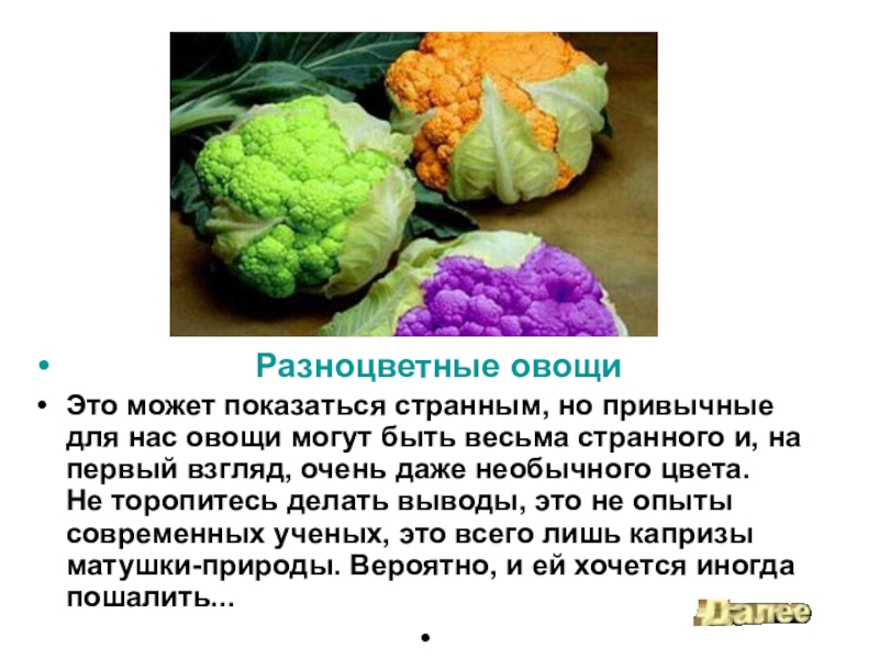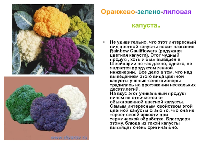 Слайд 6Оранжево-зелено-лиловая капуста.