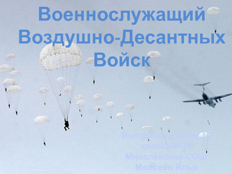 Военнослужащий Воздушно-Десантных ВойскВыполнил ученик 10 класса МОУ Михалёвской СОШ Моисеев Илья