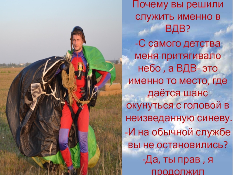 Слайд 7Почему вы решили служить именно в ВДВ?