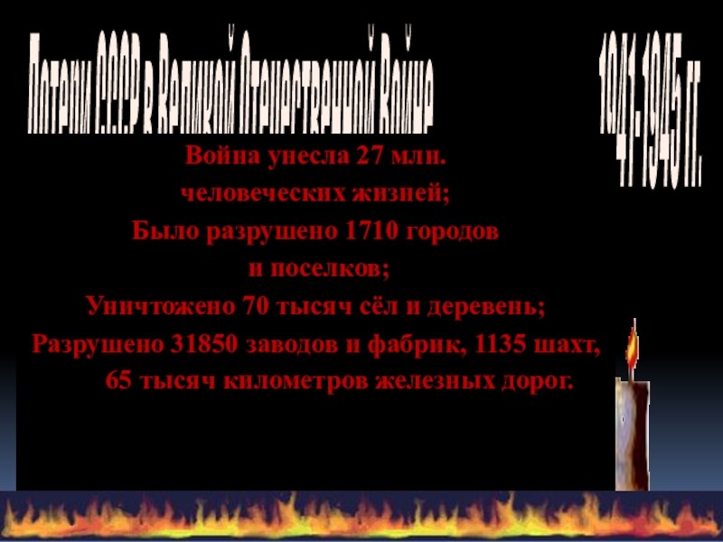 Разрушено 31850 заводов и фабрик, 1135 шахт, 65 тысяч километров железных дорог.